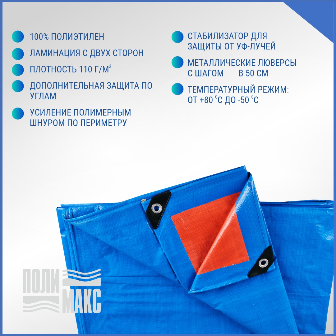 —Полог/тент полиэтиленовый 110 г/м2, 5 х 6 м, синий/оранжевый